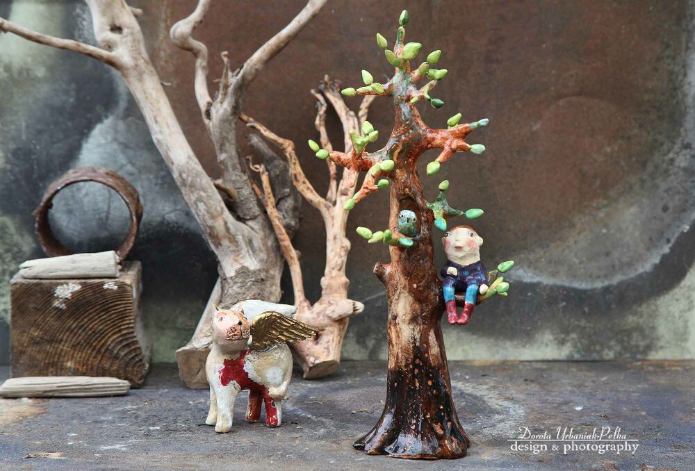 Cena obejmuje tylko rzeźbę drzewa bez postaci widocznych na zdjęciach