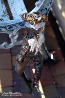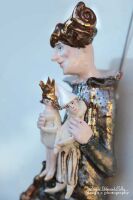 Korona, włosy, buciki postaci dziecięcej szkliwione złotem.