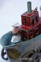 Stateczek wykonany z gliny szamotowej.