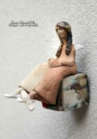 Anioł szamotowy przeznaczony do zawieszenia na ścianie lub postawienia. Z tyłu posiada stosowny otwór do zawieszenia.