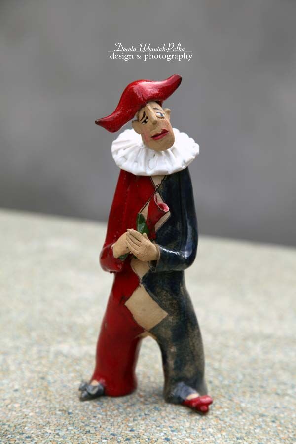 Pierrot wykonany z glinki kamionkowej.