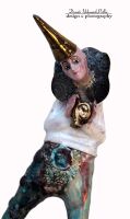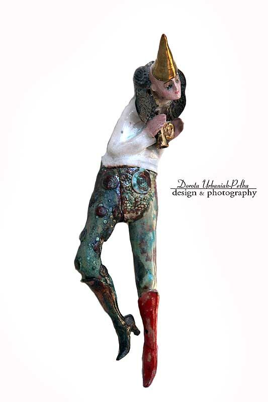 Pierrot wykonany z szamotu i wypalony w technice RAKU.