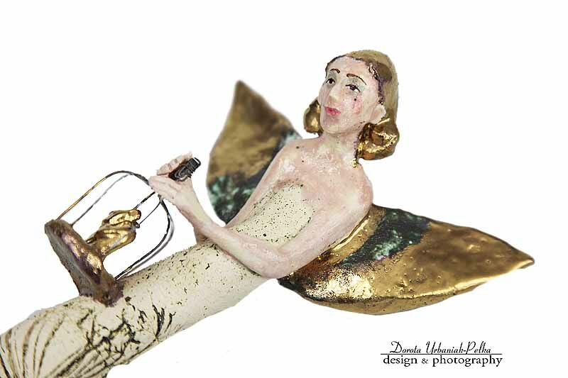 Skrzydła, włosy, klatka szkliwione złotem