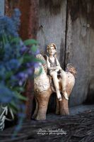 Elementy siodła, skrzydeł oraz buciki anioła szkliwione złotem.