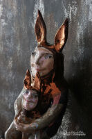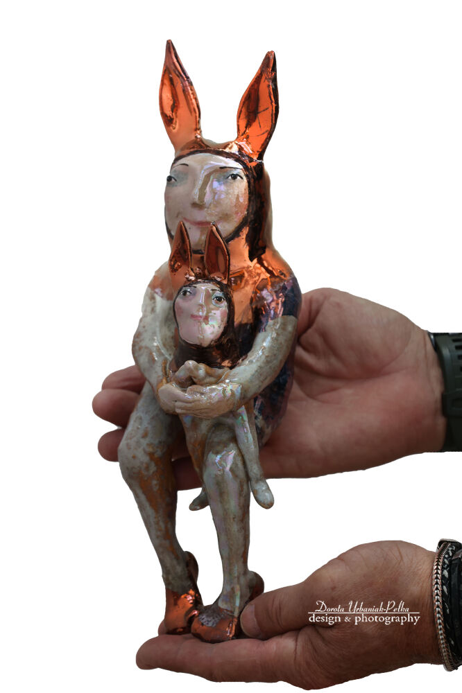 Sztafeta pokoleń wśród miedzianych królików – unikatowa rzeźba ścienna z kolekcji „Świat równoległy”.
