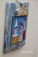 OBRAZ WYKONANY NA POSTARZONEJ DESCE DREWNIANEJ.