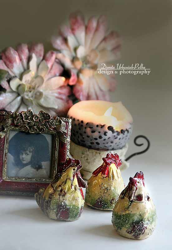 Kurka szamotowa szkliwiona i angobowana. Wykonana z szamotu. Przeznaczona do dekoracji okolicznościowych, światecznych.