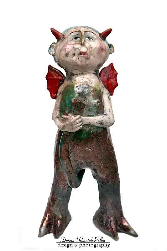 POSTAĆ DIABŁA WYKONANA ZE SZKLIWIONEGO SZAMOTU.