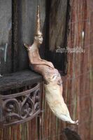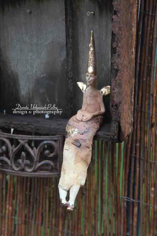 Rożek, skrzydła, element szaty oraz buciki szkliwione prawdziwym złotem.