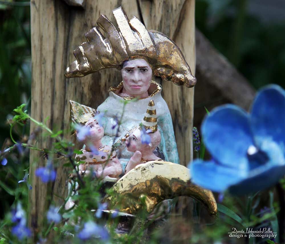 SZKLIWIONY - SZKLIWA MATOWE ŁACZONE Z BŁYSZCZĄCYMI.CZAPKI, KSIĘŻYC, DETALE SZKLIWIONE ZŁOTEM ORAZ LUSTREM.
