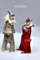 Czapka, guziczek oraz elementy bucików szkliwione prawdziwym złotem.