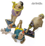 Pływak Jo w fioletowym kostiumie z żółtą kaczką ratowniczą – OOAK rzeźba ceramiczna