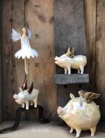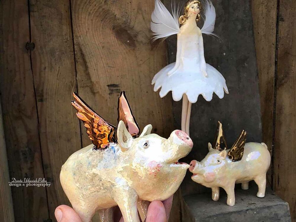 Świnka ze złotymi skrzydłami - ceramiczna świnka - skarbonka z kolekcji "Świata Równoległego".