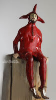 Rzeźba Stańczyka wykonana z szamotu szkliwionego.