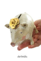 Świnka ze złotą różą – Sekretne pudełko - Ceramiczna skarbonka lub sekretnik z kolekcji „Parallel World”.