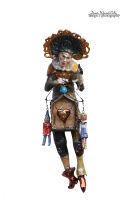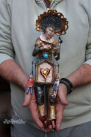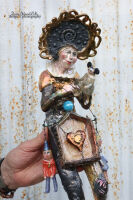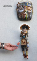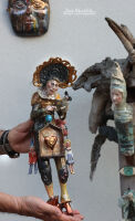W surrealistycznym splocie sztuki i magii, oto teatralny lalkarz, który jest strażnikiem tajemnicy „Świata Równoległego”. Jego ceramiczne ręce trzymają stalowe nici marionetek, które odgrywają snuć opowieści pełne humoru, melancholii i nieskończonej wyobraźni. Miedziane serce pulsuje pełne miłości . Kapelusz w odcieniach złota, wydaje się być koroną sceniczną geniusza – element, który rzuca spojrzenie jak latarnia w mroku.