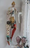 RZEŹBA PIERROTA WYKONANA Z GLINY SZAMOTOWEJ.