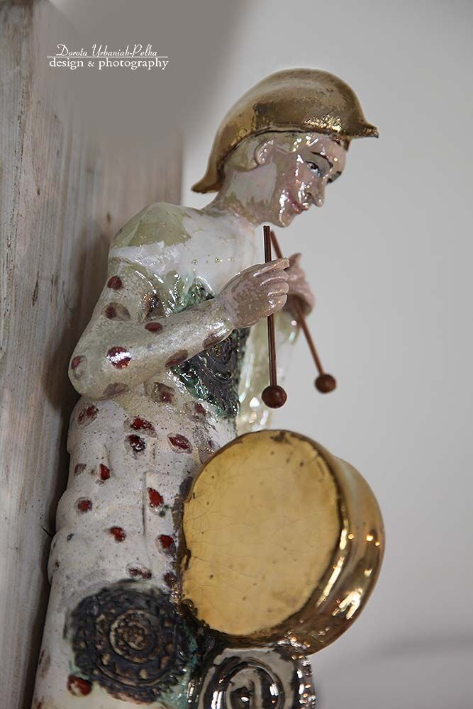 ELEMENTY: CZAPKA, BĘBEN SZKLIWIONE ZŁOTEM.
