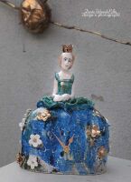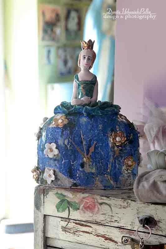 KORONA ORAZ KWIATY SZKLIWIONE ZŁOTEM.