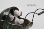 Wewnątrz psia rodzinka szkliwiona.