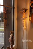 Skrzydła oraz rożek, serce , buciki szkliwione złotem.