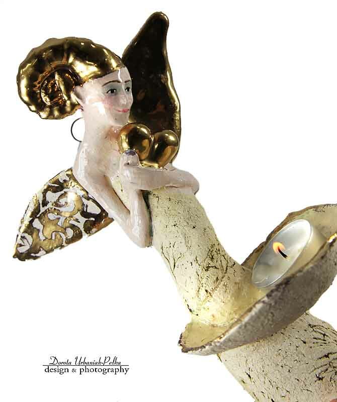 Anioł-świecznik przeznaczony do zawieszenia na ścianie.