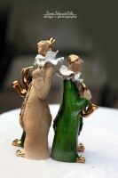 Elementy czapki , saksofonu oraz bucików szkliwione prawdziwym 16-karatowym złotem