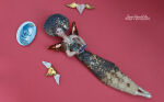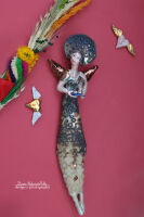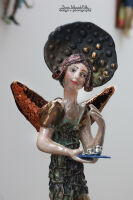 Kolory: beżowe ciało, złote skrzydła, złoty kot, subtelne akcenty