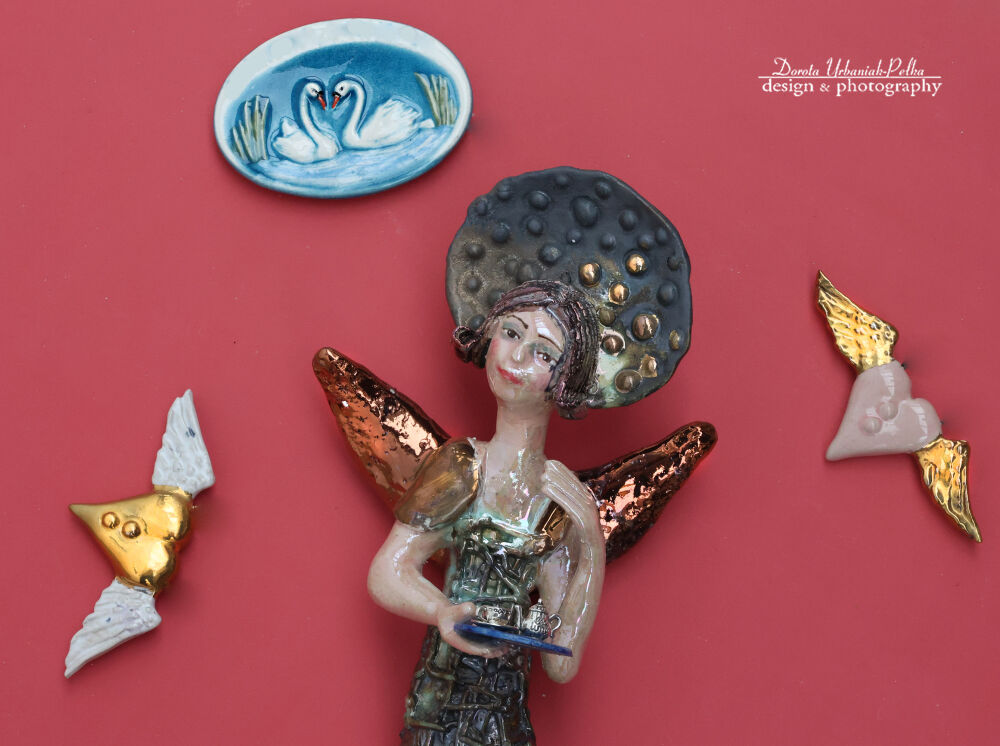 Poznaj tego Anioła – wyjątkową ceramiczną rzeźbę ścienną zrodzoną z intuicji, ognia i wyobraźni. Z majestatycznymi skrzydłami i spokojnym spojrzeniem, wnosi harmonię i delikatną ciekawość do każdej przestrzeni. Stworzony przez Dorotę Urbaniak-Pełkę z wykorzystaniem intuicyjnych technik rzeźbiarskich, każdy anioł nosi w sobie niepowtarzalny ślad emocjonalny. Nie ma dwóch takich samych – każdy to dusza zatopiona w glinie. Ta rzeźba jest częścią kolekcji Turmalinowych Aniołów, rozwijanej przez ponad 20 lat w naszej pracowni. Tysiące aniołów znalazło już domy na całym świecie, przynosząc spokój, piękno i odrobinę magii. Idealna dla: