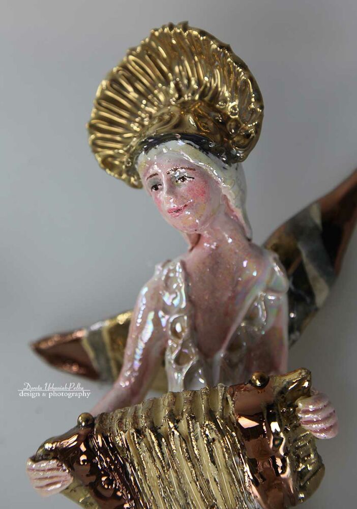 Skrzydła . HARMONIA oraz nakrycie głowy szkliwione miedzią oraz złotem.