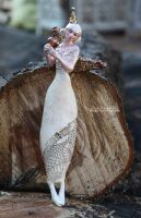 Skrzydła oraz nakrycie głowy oraz serce szkliwione miedzią oraz złotem.