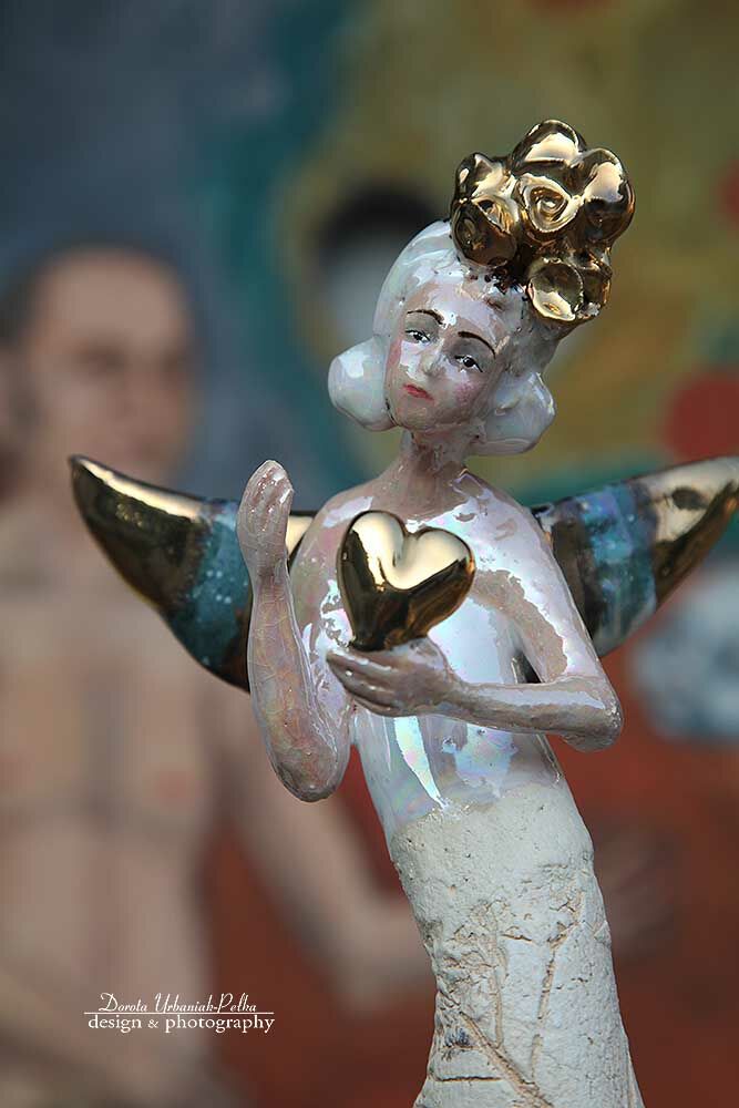 Skrzydła,serduszko, rożek szkliwione złotem.