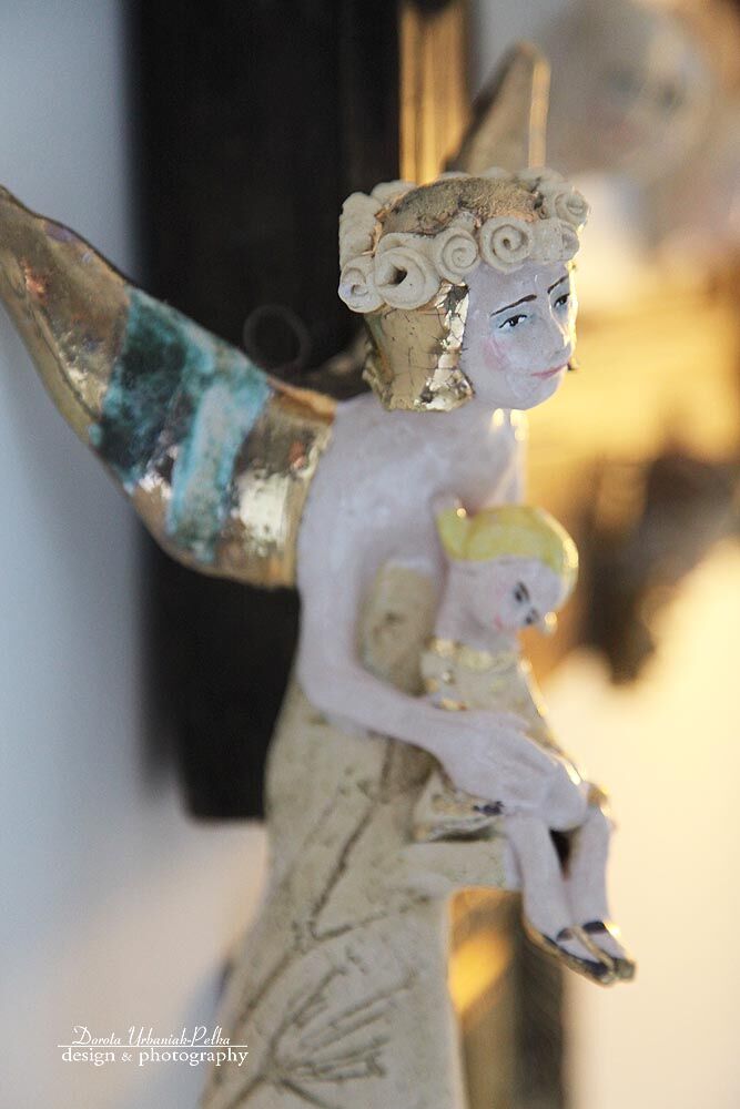Skrzydła, detaliki i buciki szkliwione złotem.