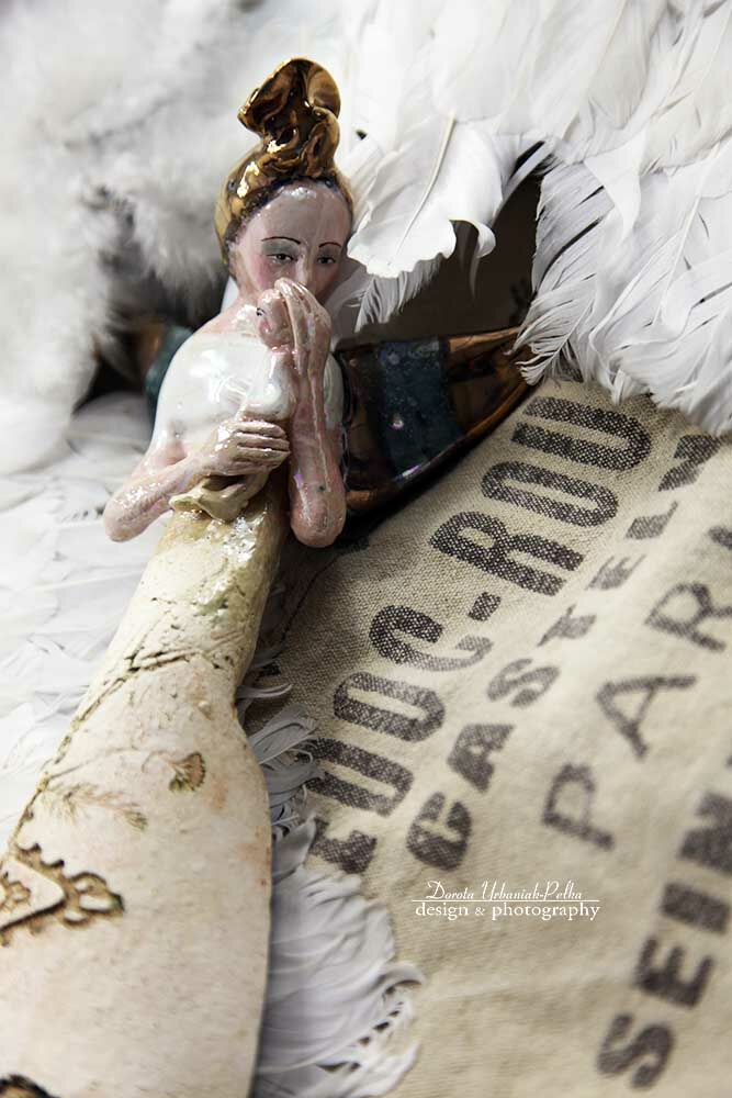 Skrzydła, nakrycie głowy szkliwione złotem.