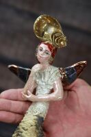 Skrzydła oraz liczne detale szkliwione miedzią oraz złotem.