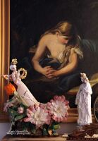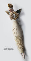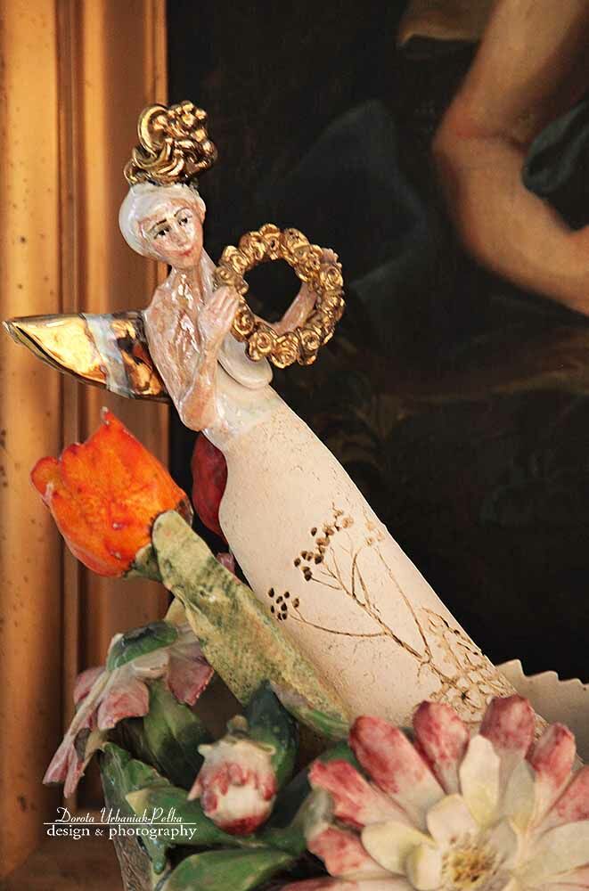 Skrzydła , wianek oraz nakrycie głowy szkliwiony złotem.