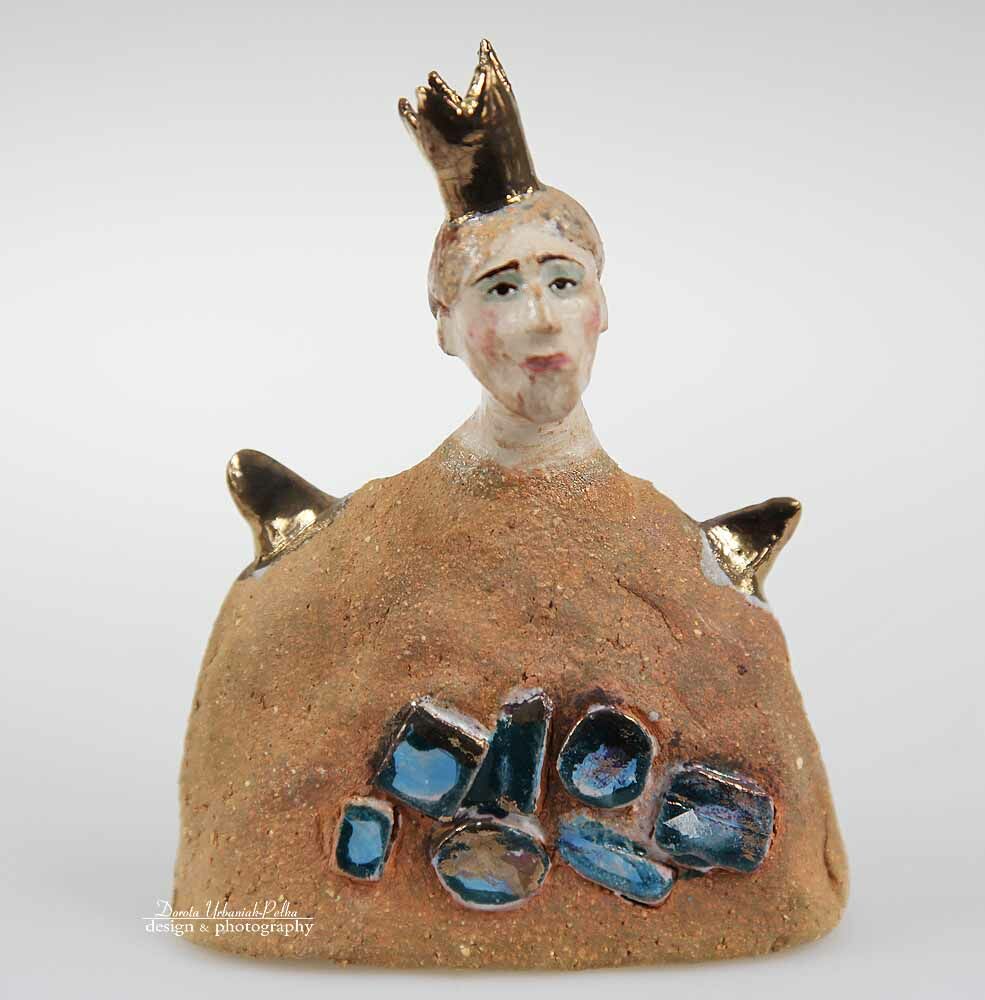 Korona oraz skrzydełka szkliwione złotem.