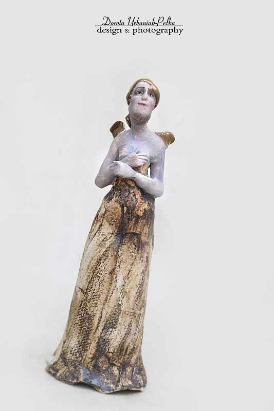 SKRZYDŁA ORAZ WŁOSY SZKLIWIONE ZŁOTEM.