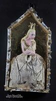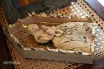 ELEMENTY LIŚCI,, KORONA ORAZ TYŁ KAPLICZKI  SZKLIWIONE ZŁOTEM,.