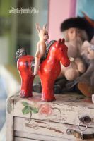 KONIK WYKONANY Z SZAMOTU W KOLORZE CERWONYM.