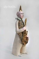 Pierrot - rzeźba kameralna - wykonana z szamotu.