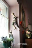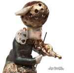ELEMENTY: CZAPKA, SKRZYPCE, BUT ORAZ ELEMENTY SZATY SZKLIWIONE ZŁOTEM.