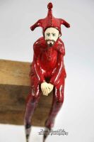Postać wykonana z szamotu . Szkliwiona.