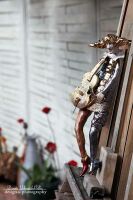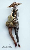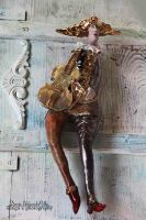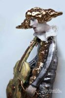 ELEMENTY: CZAPKA, MASKA, SZATA ORAZ DETALE WIOLONCZELI SZKLIWIONĘ ZŁOTEM.