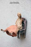 Anioł szamotowy przeznaczony do zawieszenia na ścianie lub postawienia.
