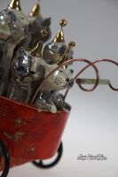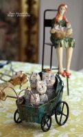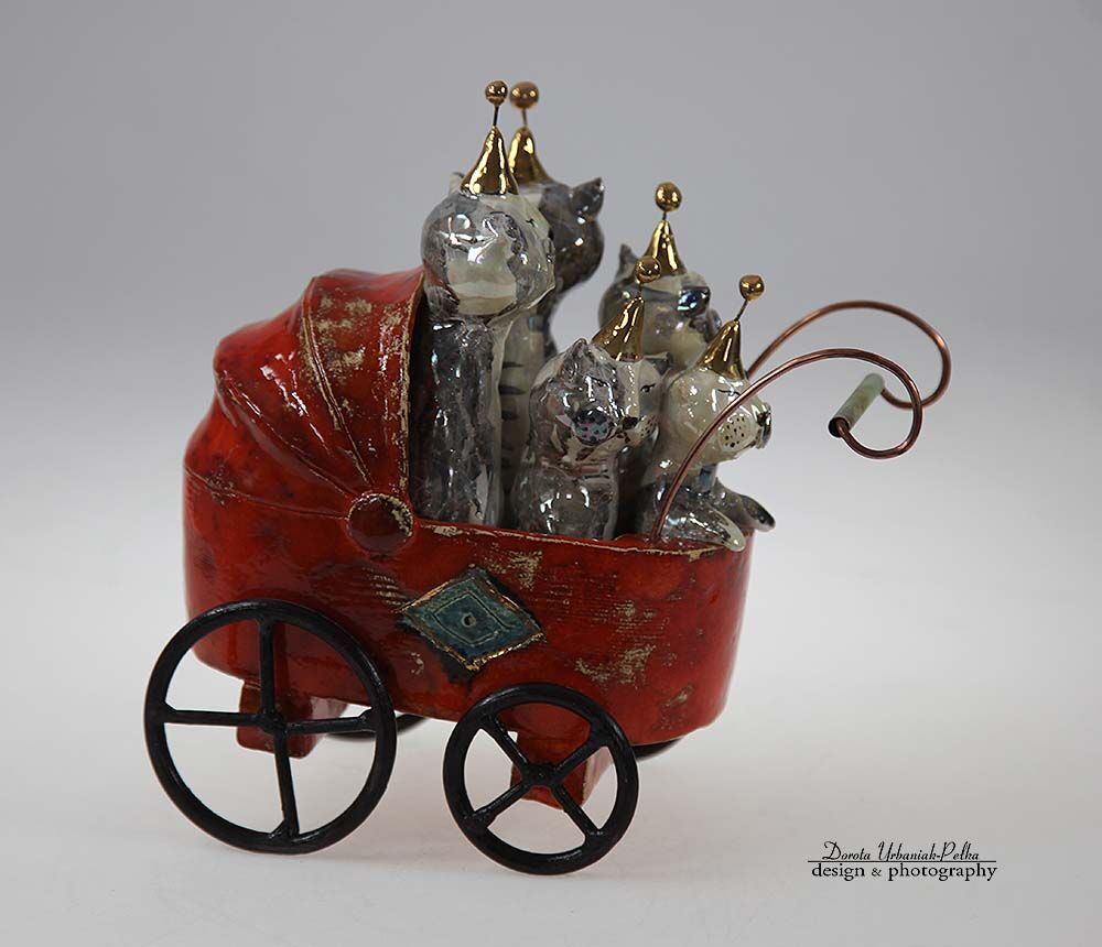 WÓZEK CZERWONY Z KOCIĄ RODZINĄ