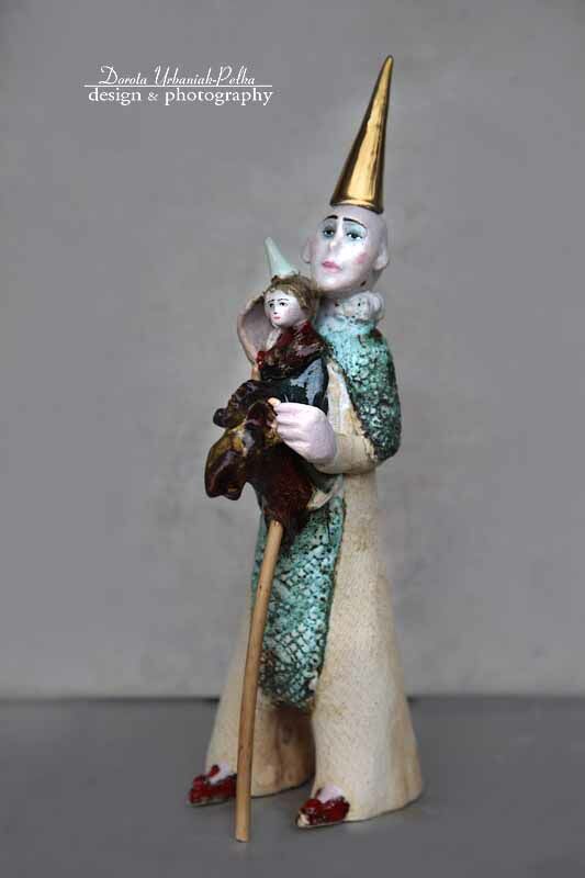 Pierrot - rzeźba kameralna - wykonana z szamotu.