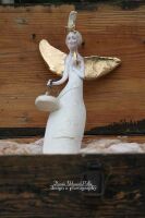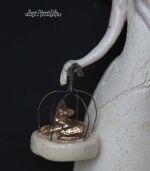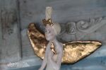 Skrzydła , buciki, kokarda, ptak oraz kot szkliwione złotem.