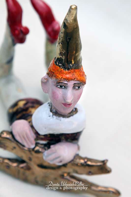 Czapka oraz ryby szkliwione prawdziwym złotem.