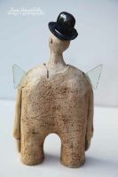 ANIOŁ WYKONANY Z SZAMOTU SZKLIWIONEGO TLENKIEM METALU.